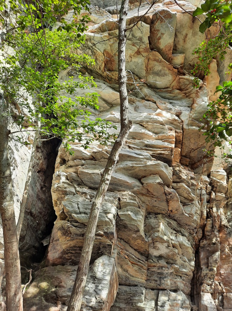 Since it was pretty cold (30 degrees F) when I woke on Saturday morning, I took my time making my way to the park. I arrived around 11am and set off on the Hanging Rock Trail. The trail entrance is at the visitor’s center parking lot and is approximately 2.6 miles out and back.